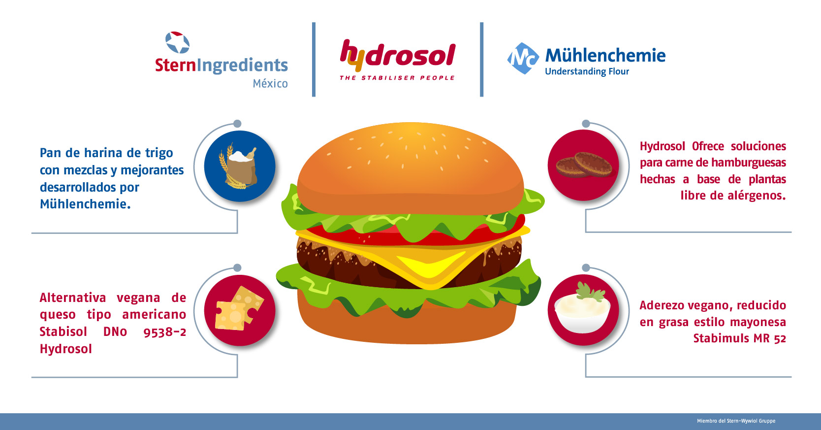 Un ejemplo claro de su aplicación es la colaboración que realizo hydrosol con Mühlenchemie para crear una hamburguesa sin carne, ¡Sí, así como lo lees!